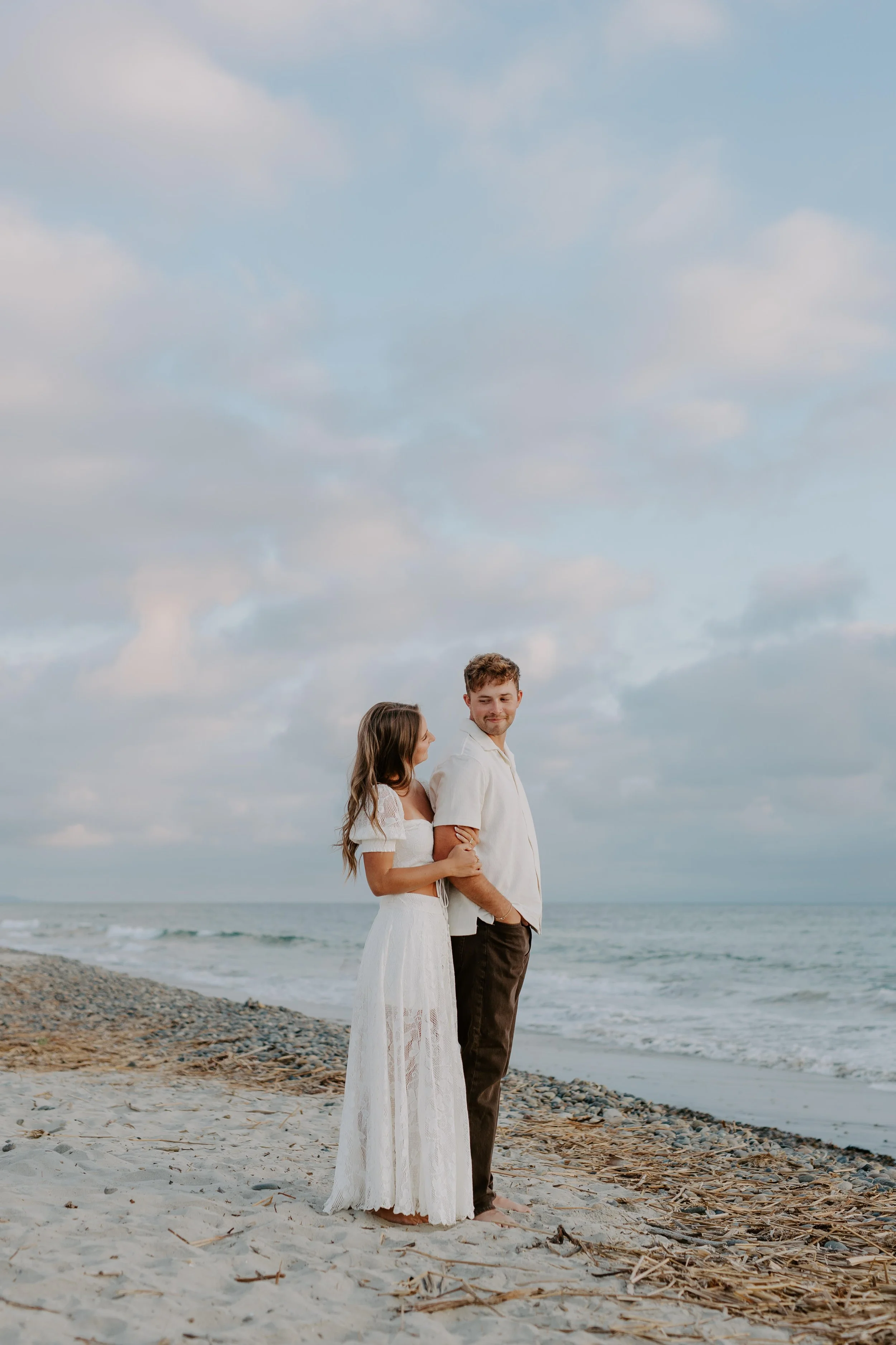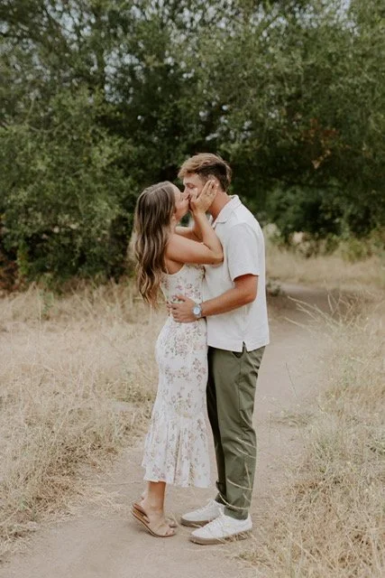 This past winter turned out to be full of surprises and wonderful moments. It all began with a family trip to Florida, where both Bishop and Emma’s family happened to be traveling to the same place at the same time. Two days into their vacation, family pictures were scheduled to be done on the beach. This was nothing out of the ordinary as Bishop's family regularly took family photos. Emma’s family planned to meet up afterwards for dinner, so they waited nearby as the pictures wrapped up. Soon after the whole family gathered together for a group shot, the photographer prompted the different couples to take photos. Soon enough it was Bishop and Emma’s turn. They did the usual couple poses until the photographer had an idea for a new shot, one where Emma was standing in front of Bishop behind her. She followed the photographer’s direction to look toward the camera, and when she turned back around, there was Bishop down on one knee! Right there on the sandy shore, with both families watching, Bishop popped the big question.